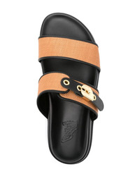 Latria flat sandals Highlights - Black - Cognac brown - Open toe - Branded footbed - Flat rubber sole - Buckle-strap fastening - Slip-on style Imported Composition Leather 100% SIZE & FIT Measurement HEEL 0.78 in(2 cm) Sole height 0.39 in(1 cm)