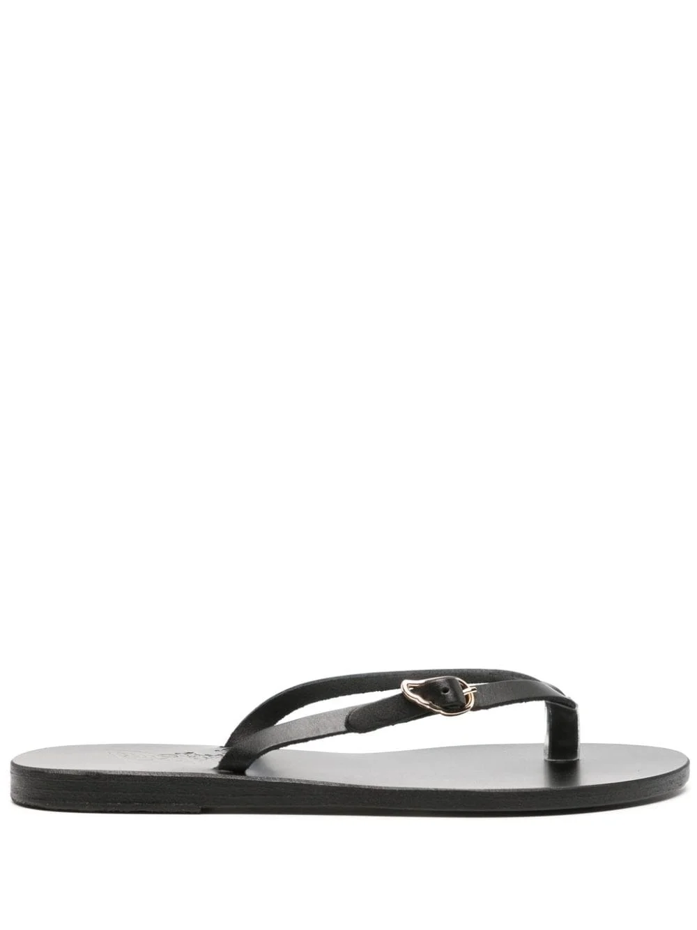 leather slip-on flip flops Highlights - Black - Calf leather - Gold-tone hardware - Almond open toe - Single toe strap - Slip-on style - Branded insole - Flat sole Imported Composition Sole: Rubber 100%, Calf Leather 100% Lining: Calf Leather 100% Outer: Calf Leather 100% SIZE & FIT Measurement HEEL 0.39 in(1 cm)