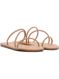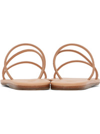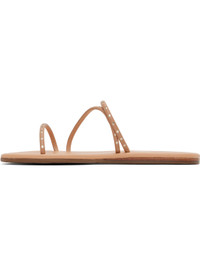 Handcrafted buffed faux-leather flat sandals in beige · Open toe · Silver-tone cutouts at straps · Logo embossed at padded footbed · Leather midsole · Treaded rubber sole Supplier color: Natural/Platinum Upper: synthetic. Sole: rubber. Made in Greece 251674F124054