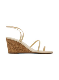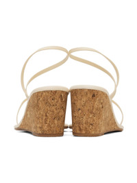 Handcrafted chemical-free nappa leather heeled sandals in off-white · Open toe · Fixed toe strap · Logo embossed at padded leather footbed · Cork wedge heel with rubber injection · Leather sole · Heel: H3" Supplier color: Off white Upper: leather. Sole: leather. Made in Greece 241674F125004