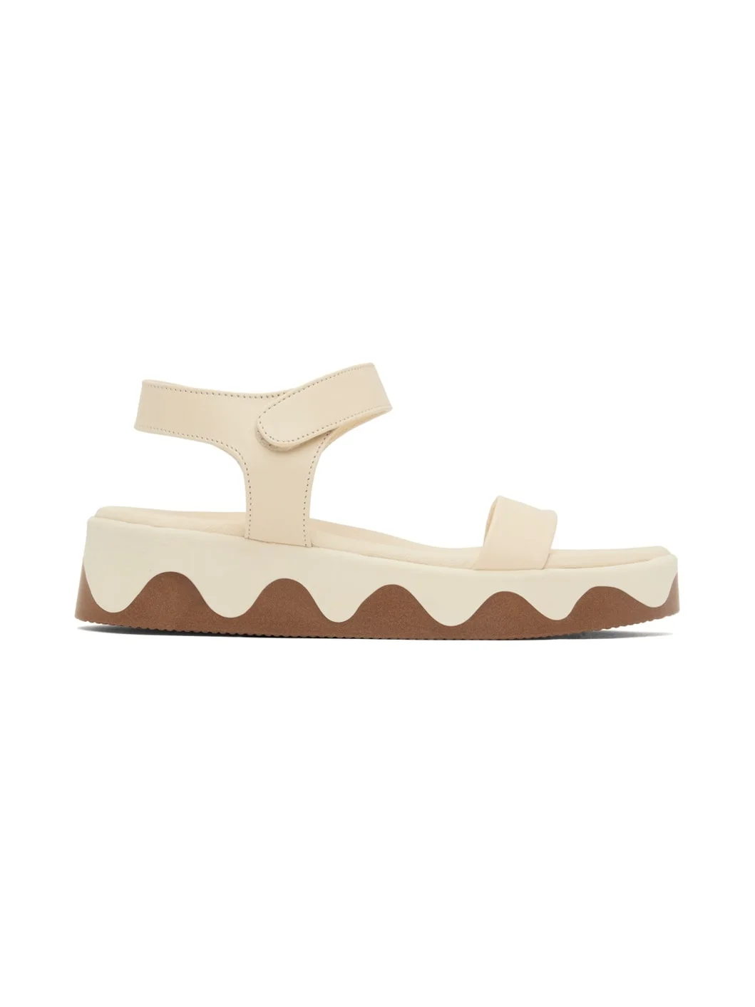 Handcrafted nappa leather sandals in off-white. · Open toe · Velcro ankle strap · Logo embossed at molded footbed · Foam rubber platform midsole · Treaded rubber sole · Platform: H1.5" Supplier color: Off white Upper: leather. Sole: rubber. Made in Greece 241674F125000