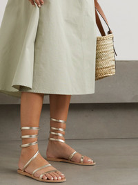 Ancient Greek Sandals' 'Ofis' pair have a coiled design inspired by classic gladiator styles. They've been handmade from supple pale-gold leather and look equally cool worn with mini skirts or over the legs of straight-leg pants. Wear them with: NICHOLAS Dress , Kayu Tote , Chan Luu Earrings. Size & Fit - Fits true to size, take your normal size - Only available in full sizes, go up to the nearest whole size if you take a half size - Italian sizing Details & Care - Slight heel - Pale-gold leather - Slip on - Imported
