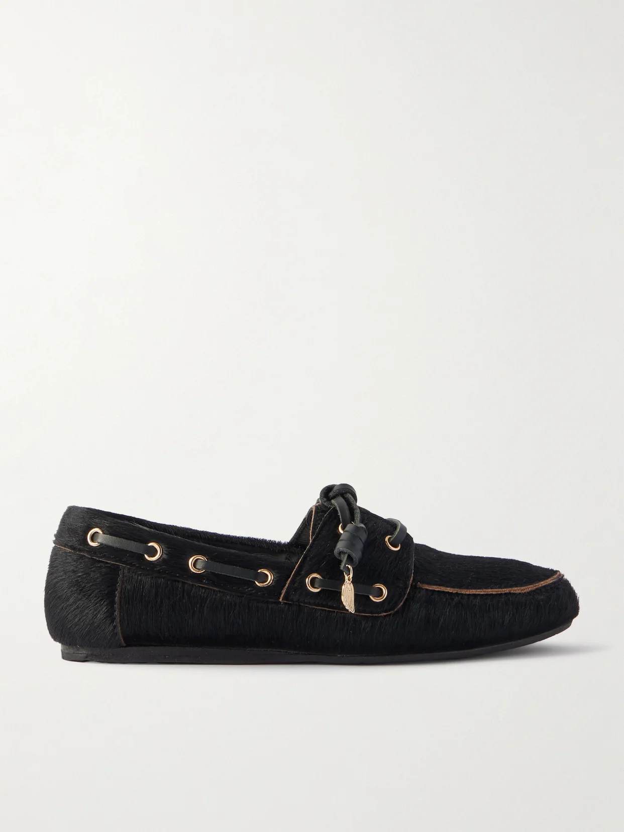 Pliaria Leather-trimmed Pony Hair Boat Shoes