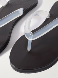 All of Ancient Greek Sandals' footwear is handcrafted by local artisans using time-honored techniques, ensuring flawless quality. These 'Saionara' flip flops are made from 'Jelly' PVC that feels so comfortable to wear. They have a slight platform that adds subtle lift and will work well with anything from dresses to denim. Size & Fit - Fits true to size, take your normal size - Only available in full sizes, go up to the nearest whole size if you take a half size - Italian sizing Details & Care - Slight heel - Clear PVC - Slips on
