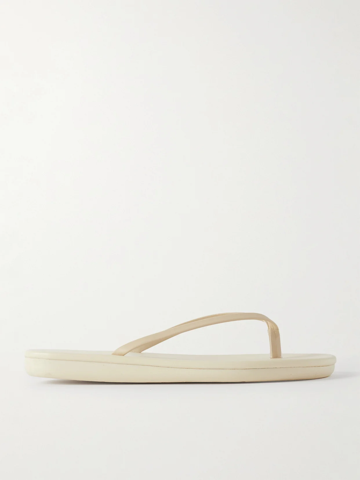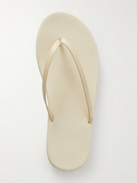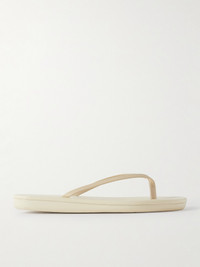 All of Ancient Greek Sandals' footwear is handcrafted by local artisans using time-honored techniques, ensuring flawless quality. These 'Saionara' flip flops are made from chemical-free cream leather that only looks and feels better with wear. They have a slight platform that adds subtle lift, and will work well with anything from dresses to denim.