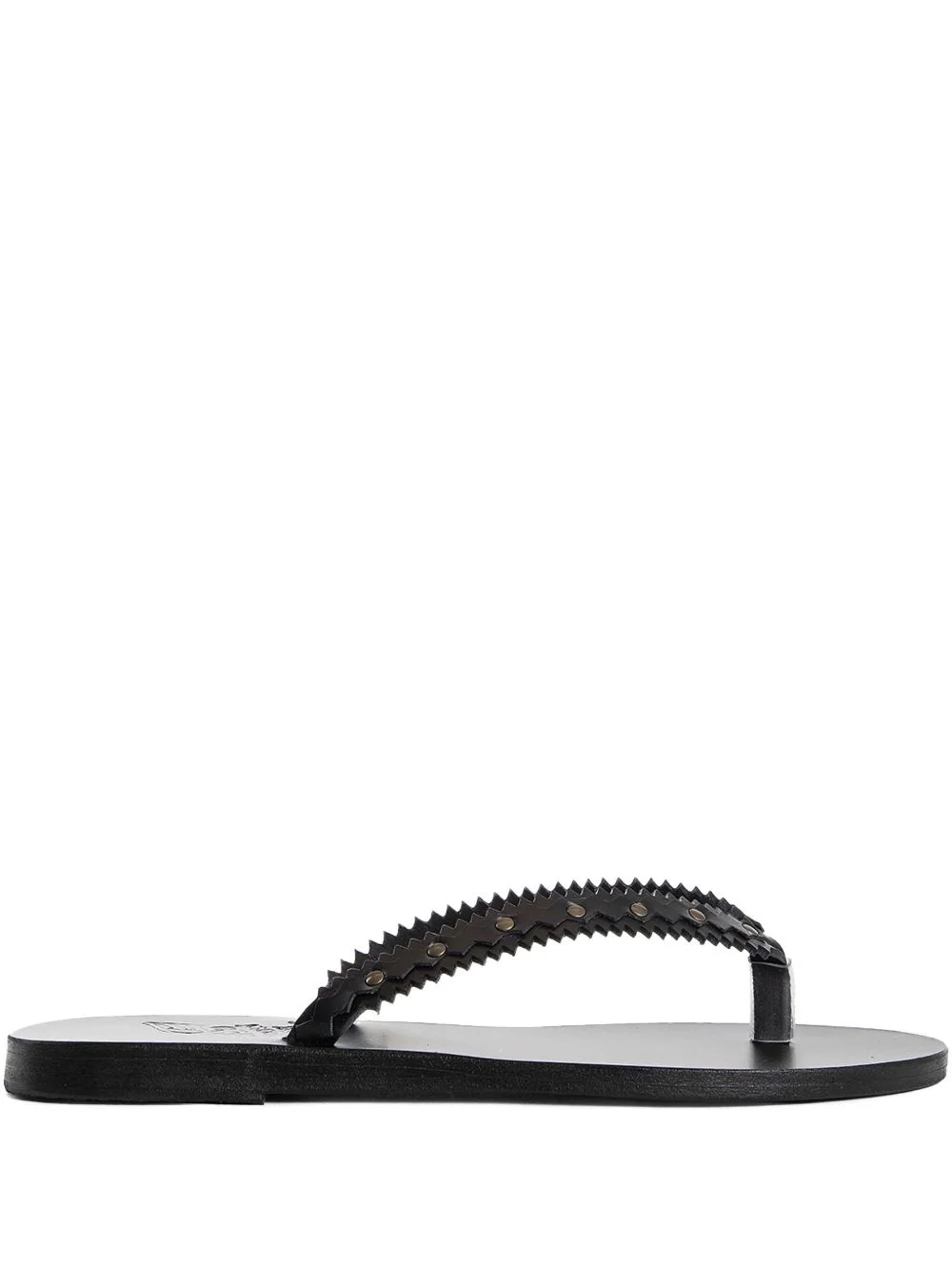 studded leather sandals Highlights - Black - Leather upper - Scalloped edges - Studded embellishment - Thong style - Flat sole Made in Italy Composition Lining: Leather 100% Outer: Leather 100% Sole: Rubber 100%