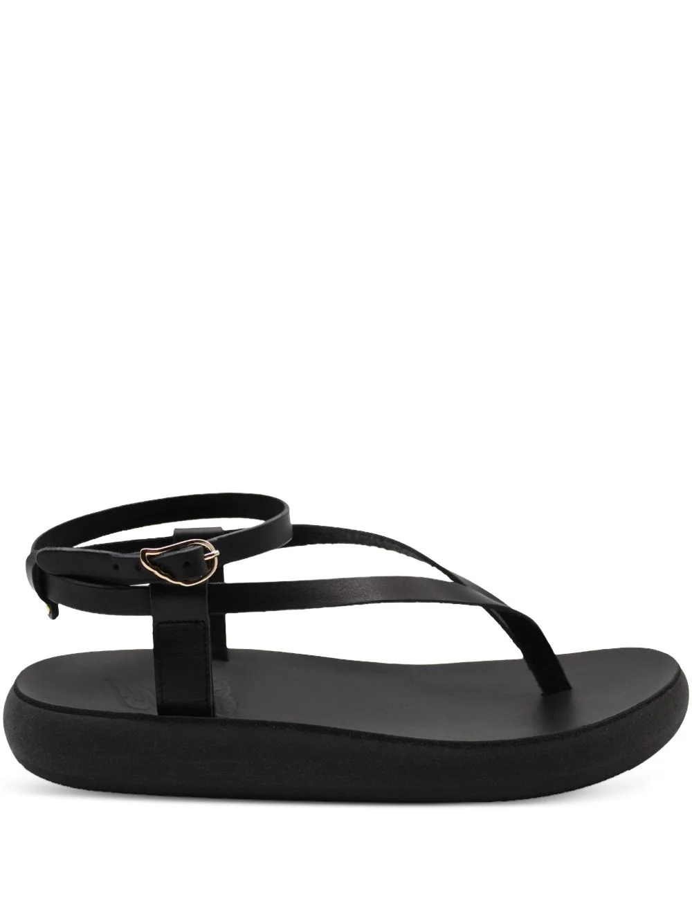 strap flat sandals Highlights - Black - Leather upper - Ankle strap - Buckle fastening - Rubber sole Imported Composition Outer: Leather 100% Sole: Rubber 100% Lining: Rubber 100%, Leather 100%