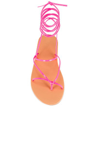 - Leather upper with rubber sole - Made in Greece - Ankle wrap tie closure - Padded leather footbed - Leather lining - Strappy design - Revolve Style No. ANCR-WZ116 - Manufacturer Style No. STRING FLIP FLOP