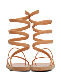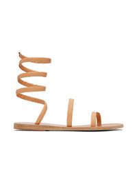 Handcrafted nappa leather sandals in tan. · Wraparound ankle strap · Logo-embossed leather footbed · Rubber injection at leather outsole Supplier color: Natural