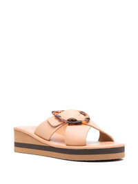 Thais Rainbow wedge slides Highlights - Beige - Calf leather - Decorative buckle detailing - Branded insole - Open toe - Crossover strap at the toe - Slip-on style - Mid wedge heel Imported Composition Leather 100% SIZE & FIT Measurement HEEL 1.96 in(5 cm) Sole height 0.98 in(2.5 cm)