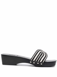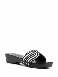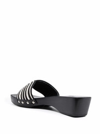 the harness clog sandals black/white leather double-strap design slip-on style silver-tone stud detailing open toe Imported Composition Lining: Calf Leather 100% Sole: Rubber 100% Outer: Fabric 100% SIZE & FIT Measurement HEEL 1.57 in(4 cm) PLATFORM 1.18 in(3 cm)