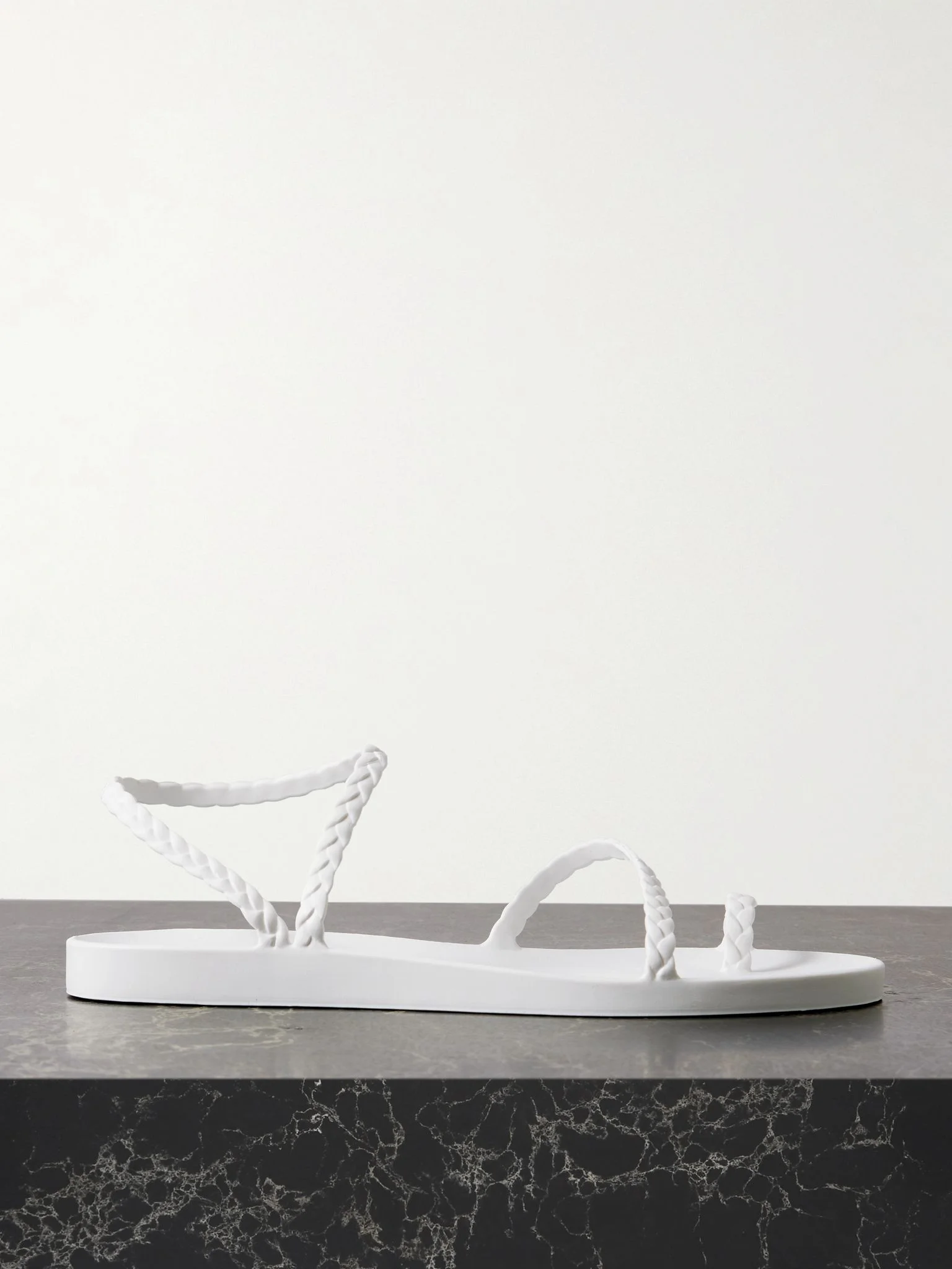 Ancient Greek Sandals' 'Eleftheria' sandals are designed with three straps that wrap elegantly around your foot. They're made from white rubber and set on a 10mm heel for added lift and comfort. Wear them to the beach or dinner post-swim. Size & Fit - Fits true to size, take your normal size - Only available in full sizes, go up to the nearest whole size if you take a half size - Italian sizing Details & Care - Slight heel - White rubber - Slip on