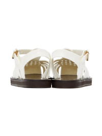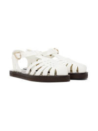 Handcrafted woven PVC sandals in white. · Cutouts throughout · Logo pin-buckle ankle strap · Logo embossed at leather footbed · Hand-stitched stacked leather midsole · Logo-embossed rubber sole Supplier color: White Upper: polyvinyl chloride. Sole: leather, rubber. Made in Greece 242674F124000