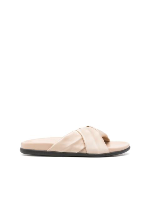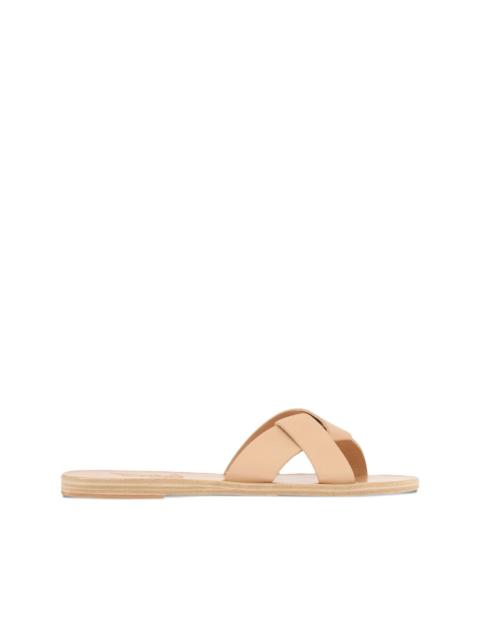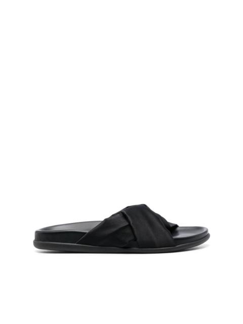 Whitney satin slides Pulling from mythological inspirations, these slides from Ancient Greek Sandals are handmade using traditional techniques. With a casual slip-on silhouette, the Whitney feature satin straps elevated by a monochromatic black colourway. Highlights - Black - Calf leather - High-shine finish - Slip-on style - Branded footbed - Flat rubber sole Imported Composition Other fibres 100% SIZE & FIT Measurement HEEL 0.78 in(2 cm) Sole height 0.59 in(1.5 cm)