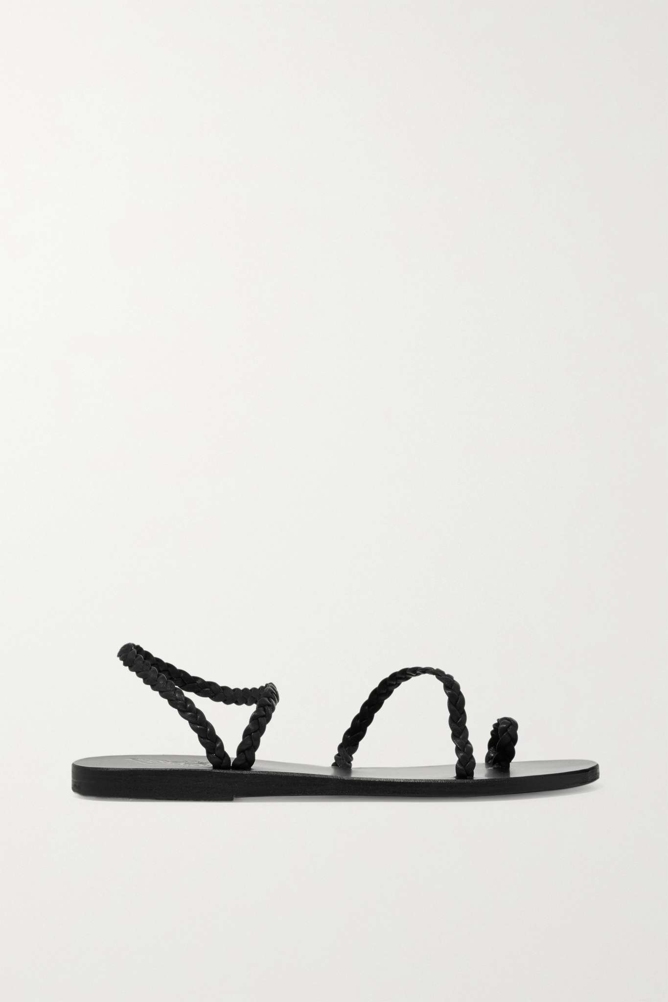 EDITORS'NOTES Each pair of Ancient Greek Sandals' shoes is handcrafted using techniques that have been honed over centuries. This 'Eleftheria' style is simply detailed with three braided leather straps that wrap delicately around the foot. Whether on vacation or in the city, they'll complement virtually any outfit in your summer wardrobe.<br><br>Shown here with: [By Malene Birger Skirt id1080751], [Gu_de Shoulder bag id1088088], [Wolford Bodysuit id1078509], [Paola Vilas Ring id1070377], [Alighieri Necklace id1087339]. SIZE & FIT - Fits true to size, take your normal size - Only available in full sizes, go up to the nearest whole size if you take a half size - Italian sizing DETAILS & CARE - Sole measures approximately 10mm/ 0.5 inches - Black leather - Slip on - Imported