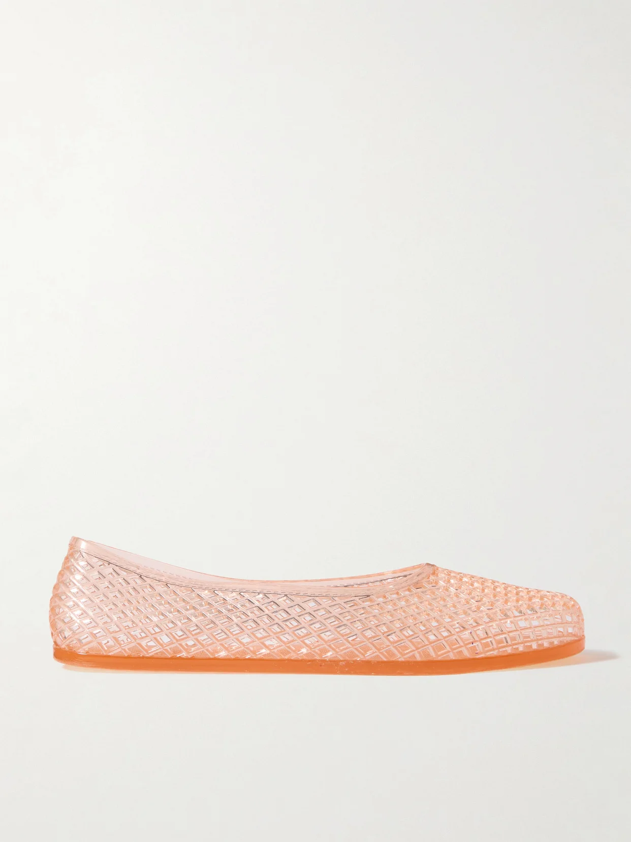 Ballet styles inspire Ancient Greek Sandals' 'Iro' flats, which are made for the beach with their rubbery, washable PVC. They have a lattice construction that makes them especially airy and flexible, too.