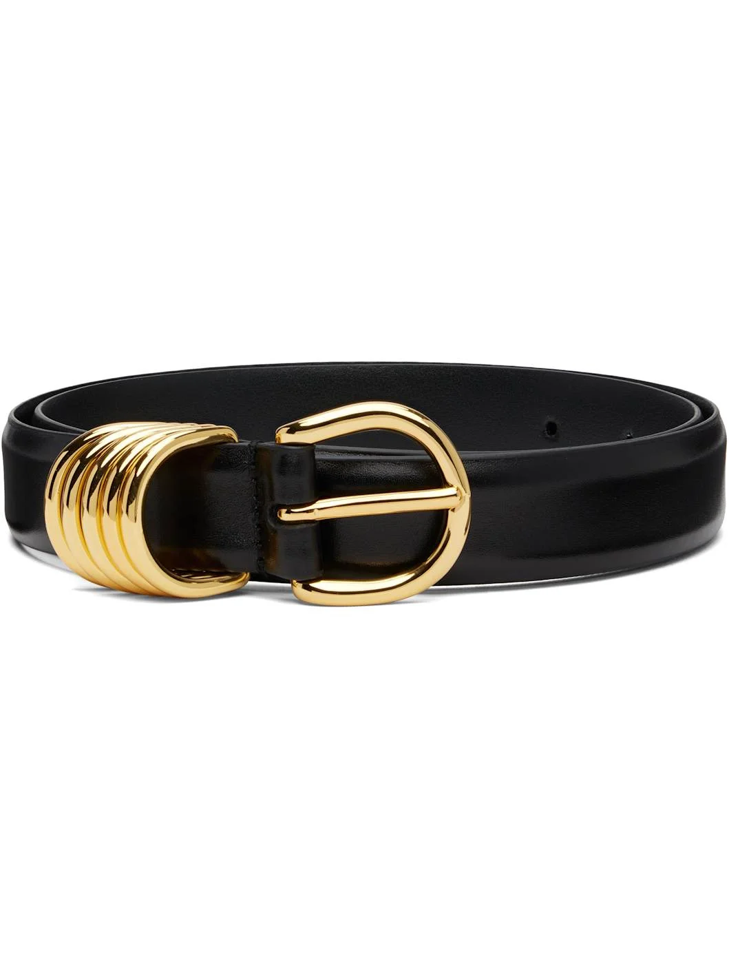 Handcrafted buffed calfskin belt. · D-ring keeper loops · Pin-buckle fastening · Gold-tone hardware · W1" Supplier color: Black Calfskin. Made in Italy 252176F001008