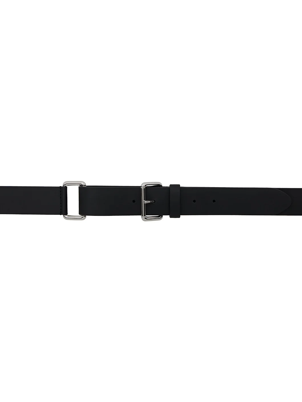 Handcrafted grained calfskin belt in black. · Pin-buckle fastening · Hardware at face · Silver-tone hardware · W1.5" Supplier color: Black Calfskin. Made in Italy 251176F001017
