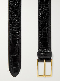 Anderson's is known for producing high-quality leather goods. A classic addition to your everyday wardrobe, this black croc-effect belt has been expertly made at a workshop in Italy where the artisans use a 100-step process. It fastens with a gleaming gold buckle. Size & Fit - Designed to be worn on the waist Measurements can be found in the link below Details & Care - Black croc-effect leather (Calf) - Buckle fastening - Made in Italy