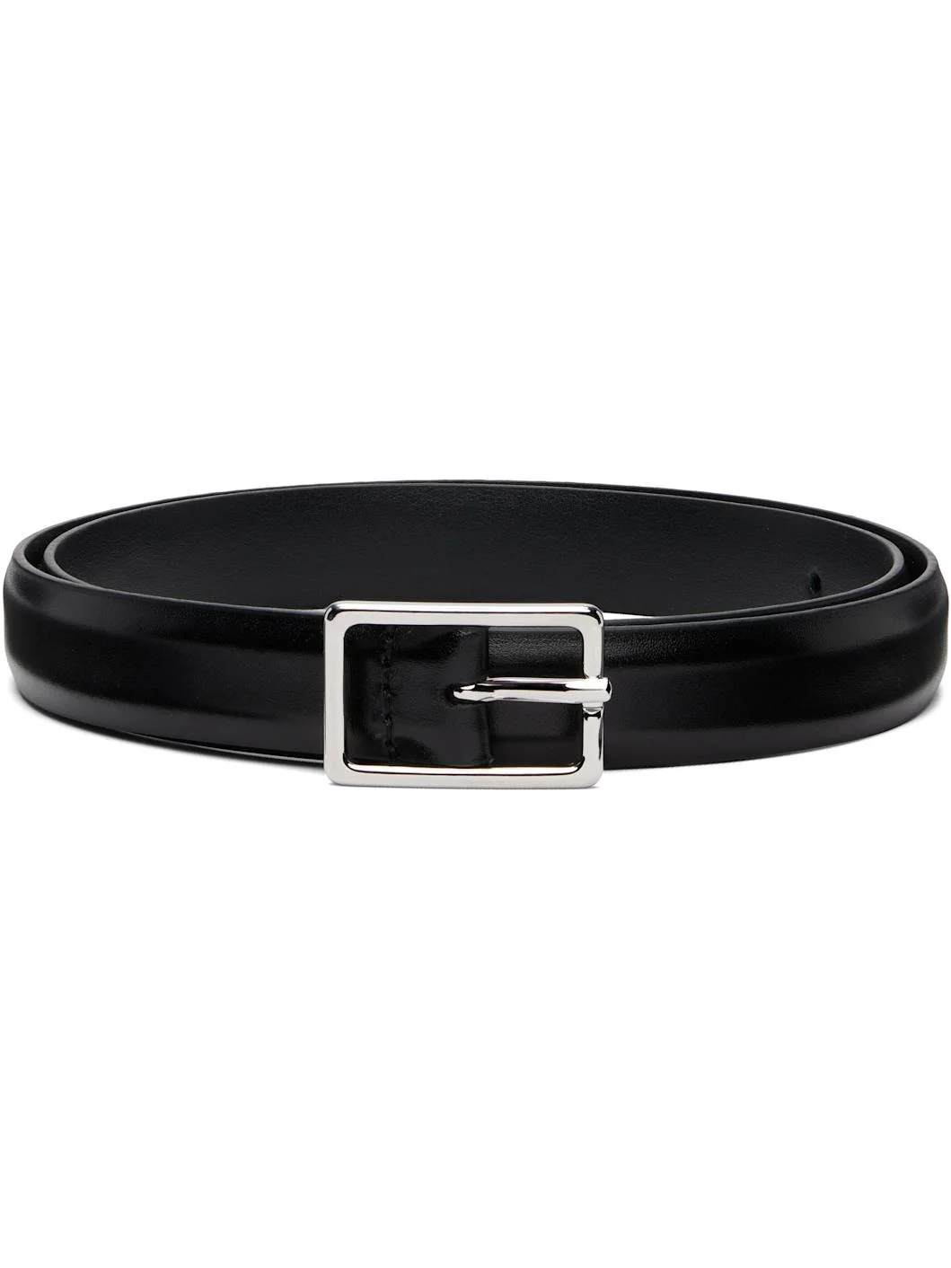 Black Skinny French Calfskin Rectangular Buckle Belt