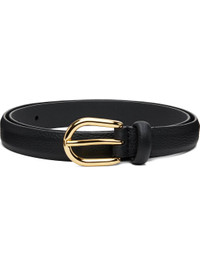 Grained leather calfskin belt. · Keeper loop · Pin-buckle fastening · Gold-tone hardware · W0.75" Supplier color: Black Calfskin. Made in Italy 252176F001001