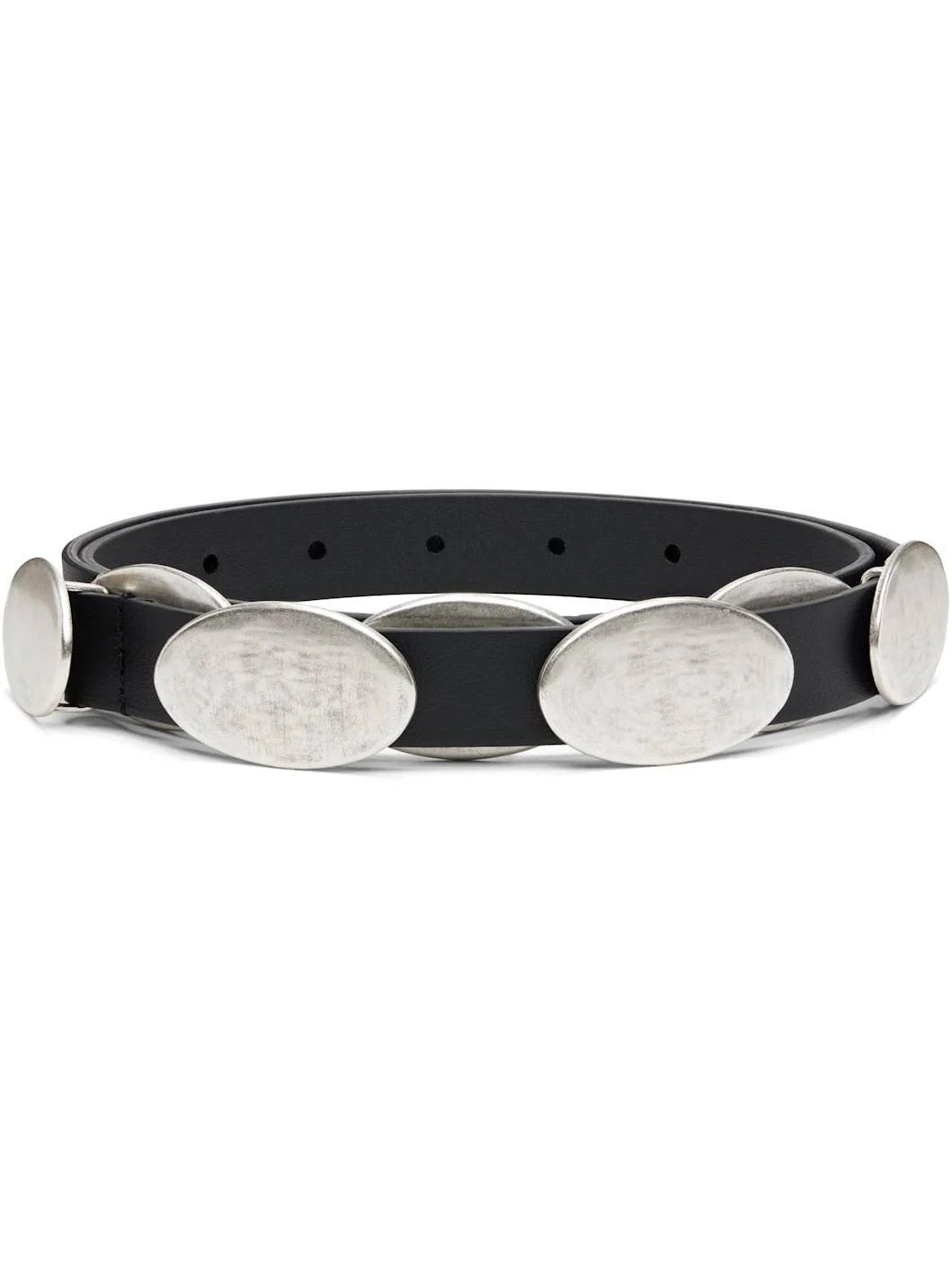 Buffed nappa calfskin belt. · Oval hardware at length · Post-stud fastening · Antiqued silver-tone hardware · W0.75" Supplier color: Black Calfskin. Made in Italy 252176F001009