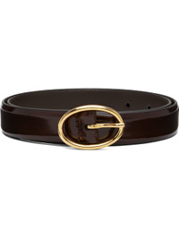 Handcrafted patent calfskin belt. · Pin-buckle fastening · Gold-tone hardware · W1" Supplier color: Dark brown Calfskin. Made in Italy 252176F001022