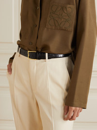 Anderson's is known for producing high-quality leather goods. A classic addition to your everyday wardrobe, this black croc-effect belt has been expertly made at a workshop in Italy where the artisans use a 100-step process. It fastens with a gleaming gold buckle.