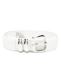 leather belt Highlights - White - Calf leather - Grained texture - Front buckle fastening - Silver-tone hardware Made in Italy Composition Calf Leather 100% SIZE & FIT Measurement Maximum Length 37 in(94 cm) Minimum Length 33.07 in(84 cm) TOTAL LENGTH 41.33 in(105 cm) WIDTH 1.25 in(3.2 cm)