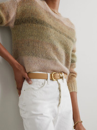 Anderson's waist belt has been handmade in Parma, Northern Italy, a place famed for the quality of its leather goods. This 3cm style is embellished with gold-tone hardware that's polished to a high gleam and has a textured finish. The versatile sand shade will go with plenty. Size & Fit - Designed to be worn on the waist Measurements can be found in the link below Details & Care - Sand textured-leather (Calf) - Buckle fastening