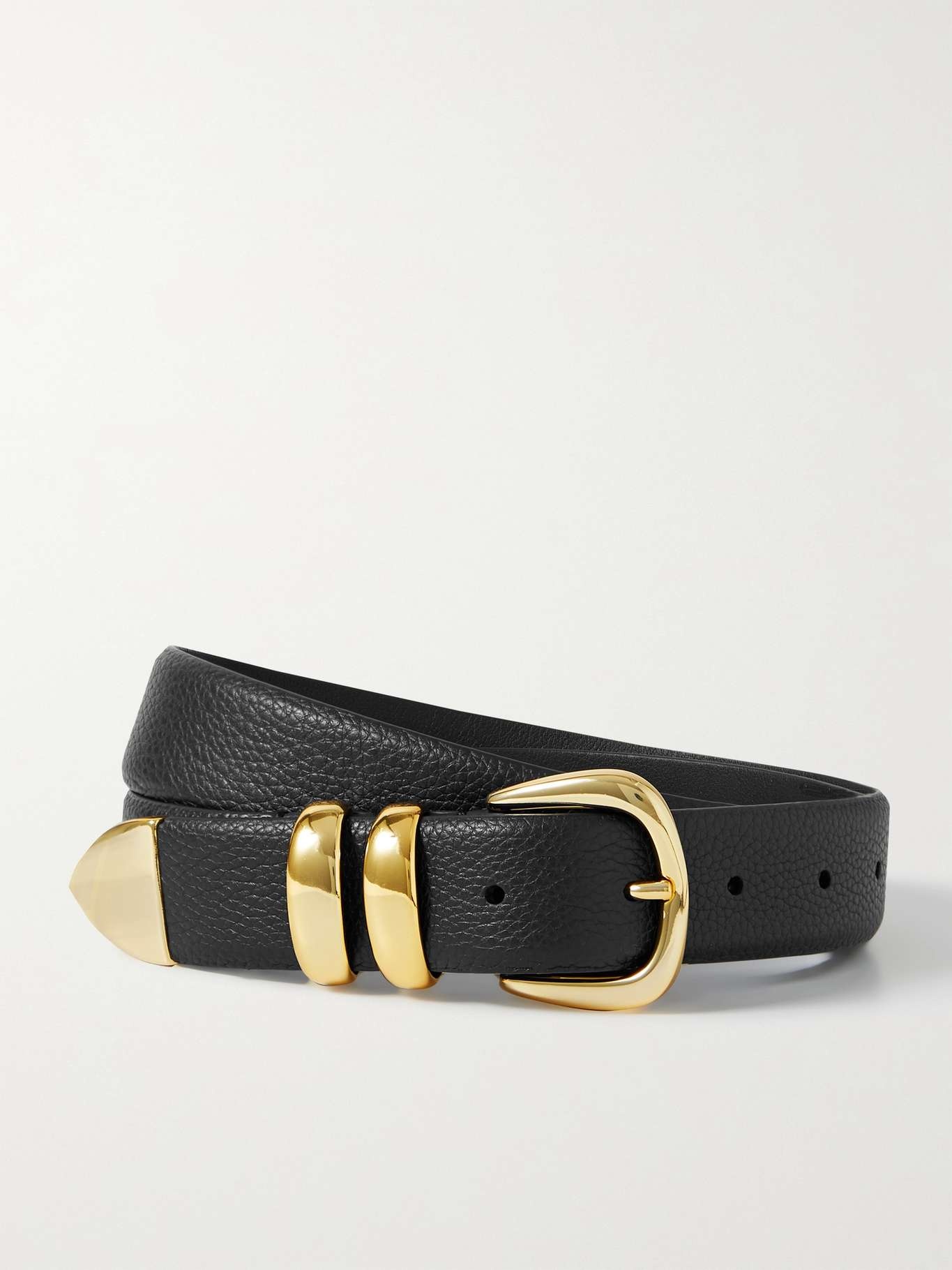 EDITORS'NOTES Anderson's belts are designed with quality and longevity in mind, so you're guaranteed to use them often. This one is made from black textured-leather and tipped with polished gold-tone hardware. Thread it through a pair of jeans or tailored pants. SIZE & FIT - Designed to be worn on the hips or waist - Measurements can be found in the link below DETAILS & CARE - Black textured-leather (Calf) - Buckle fastening