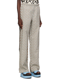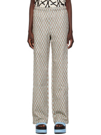 Polyester- and rayon-blend gobelin trousers. Jacquard graphic pattern throughout. · Concealed drawstring at elasticized waist · Four-pocket styling · Gusset at outseams Supplier color: Beige 60% polyester, 40% rayon. Made in South Korea 231375F087008