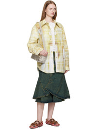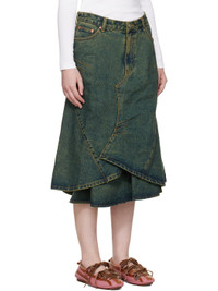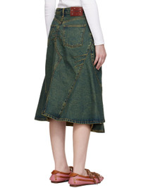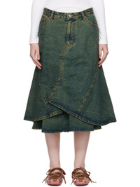 Non-stretch denim midi skirt. · Fading and discoloration throughout · Paneled construction · Darts throughout · Belt loops at waist · Five-pocket styling · Zip fly · Layered hem · Leather logo patch at back waist Supplier color: Army green/Blue 100% cotton. Made in South Korea 252375F092005