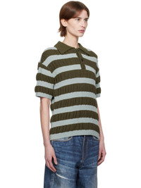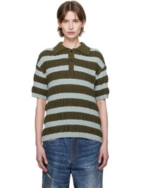 Textured rib-knit cotton- and nylon-blend polo. Stripes throughout. · Spread collar · Two-button placket · Dropped shoulders Supplier color: Brown/Mint 65% cotton, 35% nylon. Made in South Korea 251375F108005