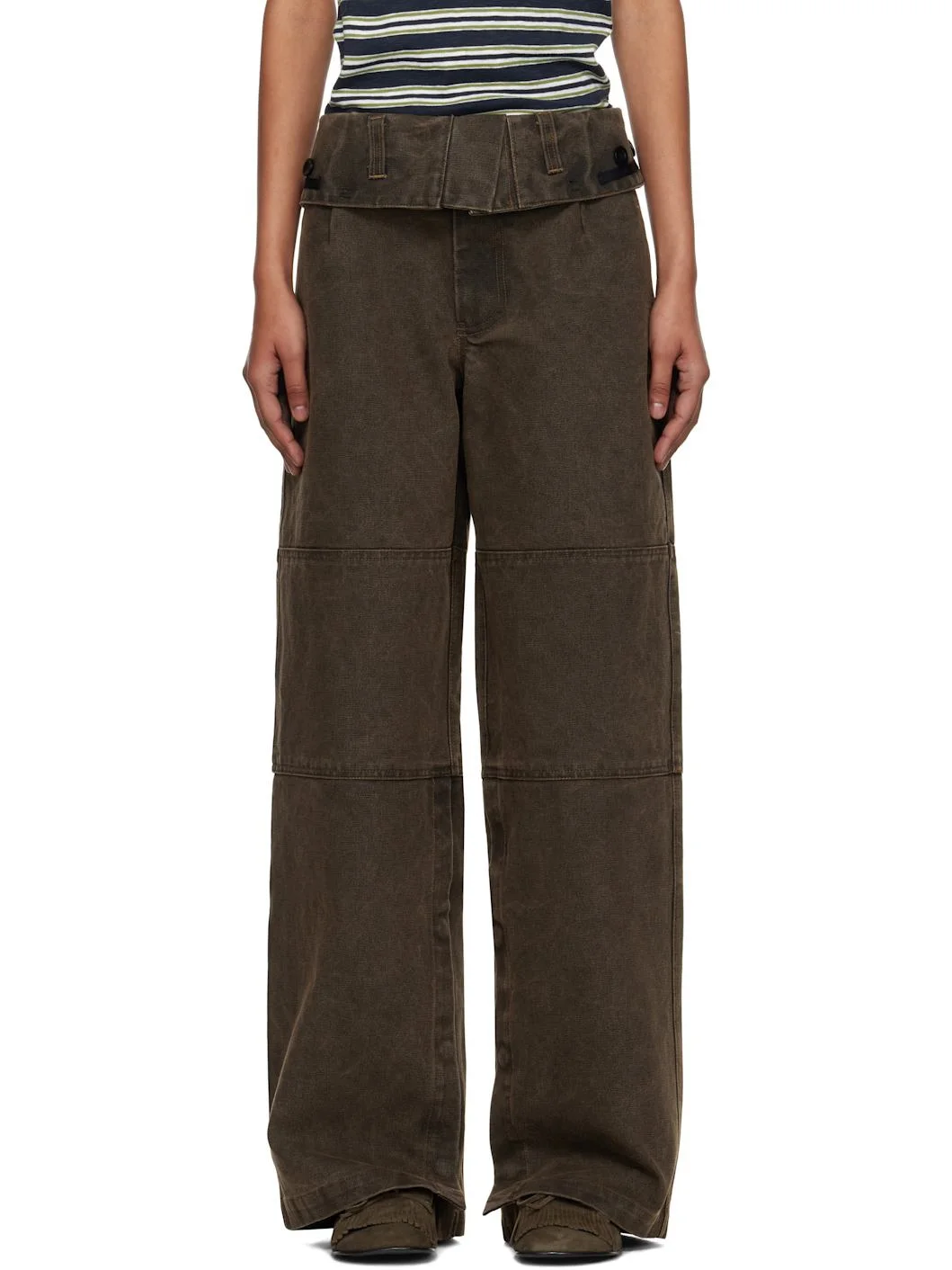 Cotton canvas trousers. · Belt loops at foldover waistband · Four-pocket styling · Zip fly · Press-stud vent at cuffs · Button hardware at waistband outseams Supplier color: Brown 100% cotton. Made in South Korea 252375F087000