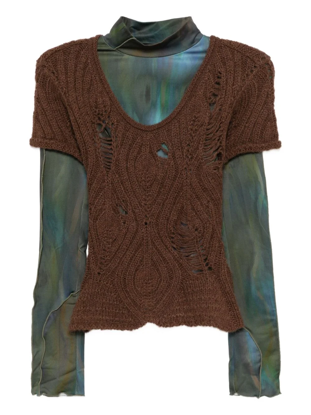layered pattern top set Highlights - Dark green/brown - Round neck - Set of two Imported Composition Lining: Polyester 96%, Elastane 4% Outer: Acrylic 53%, Nylon 22%, Wool 18%, Alpaca 7% Washing instructions Dry Clean Only