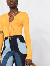 cut-out long-sleeve top Highlights - Orange - Cut-out detailing - V-neck - Long sleeves - Asymmetric design Imported Composition Modal 94%, Spandex/Elastane 6% SIZE & FIT Model measurements Height 5 ft 9 in(1.76 m) Bust/Chest 31.88 in(81 cm) Hips 35.03 in(89 cm) Waist 24.01 in(61 cm) FittingInformation This piece fits true to size. We recommend you get your regular size Cut for a slim fit Made with a mid-weight stretch fabric Washing instructions Machine Wash