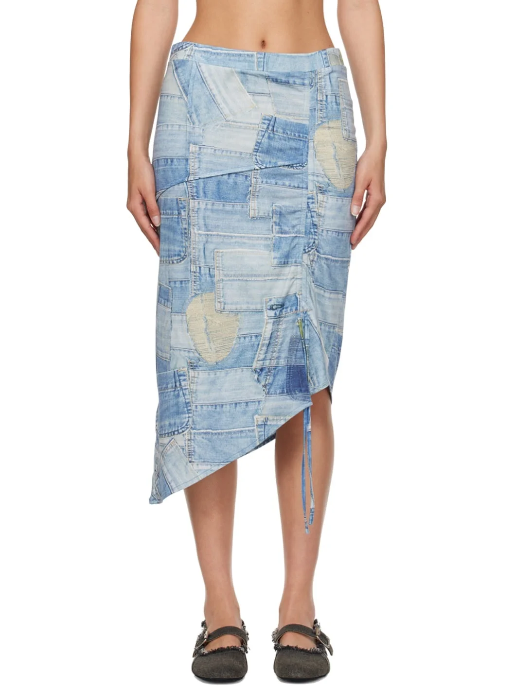 Polyester jersey skirt. Gathering and trompe l'œil graphic pattern printed throughout. · Elasticized waistband · Drawstring at asymmetric hem Supplier color: Blue 100% polyester. Made in South Korea 232375F092002
