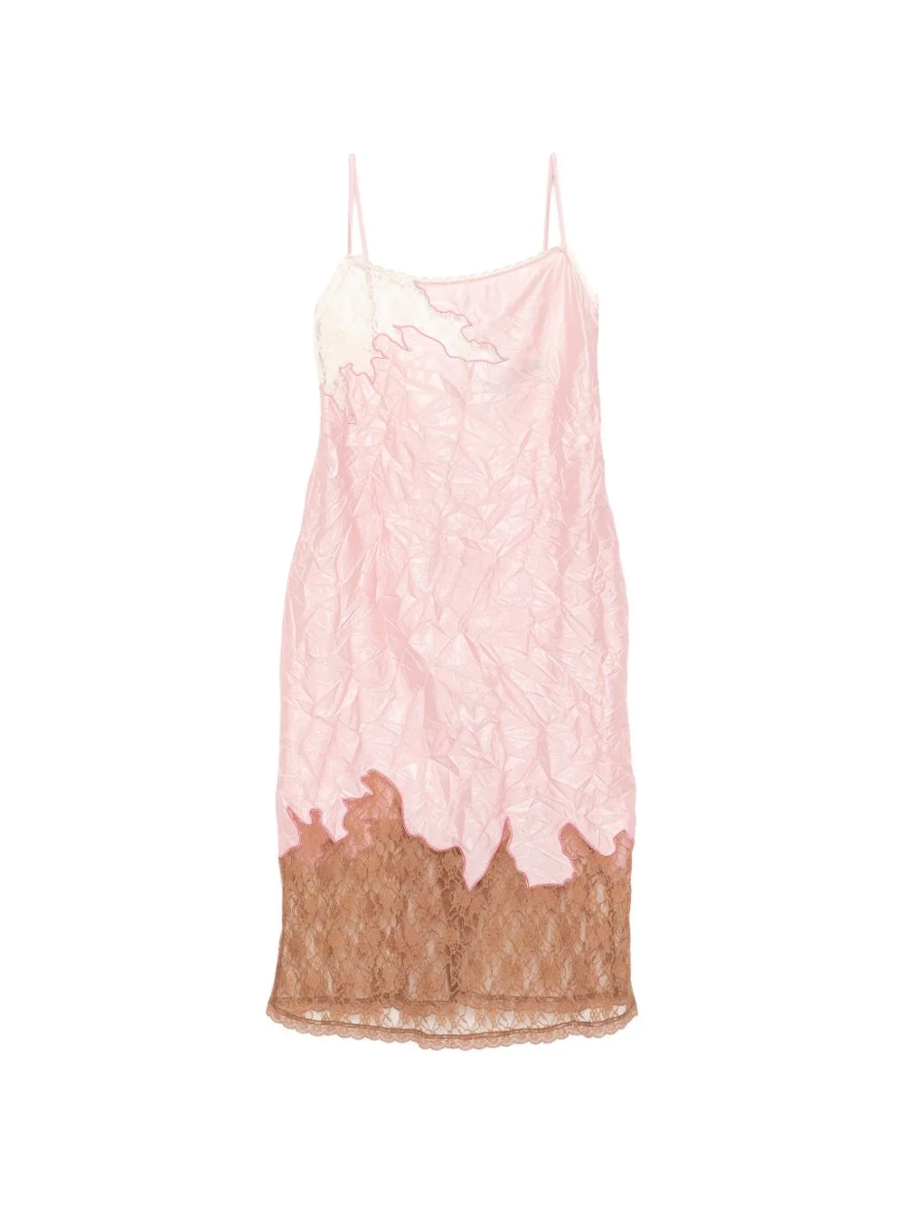 embroidered lace midi dress Highlights - Light pink - Lace detail - Panelled design - Adjustable shoulder straps - The crease-effect on this piece is very much intentional, no ironing necessary. Imported Composition Outer: Polyester 100% Nylon 100% Washing instructions Dry Clean Only