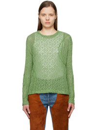 Open knit polyester- and cotton-blend sweater. · Overlock stitching throughout · Crewneck Supplier color: Green 75% polyester, 25% cotton. Made in South Korea 231375F096009