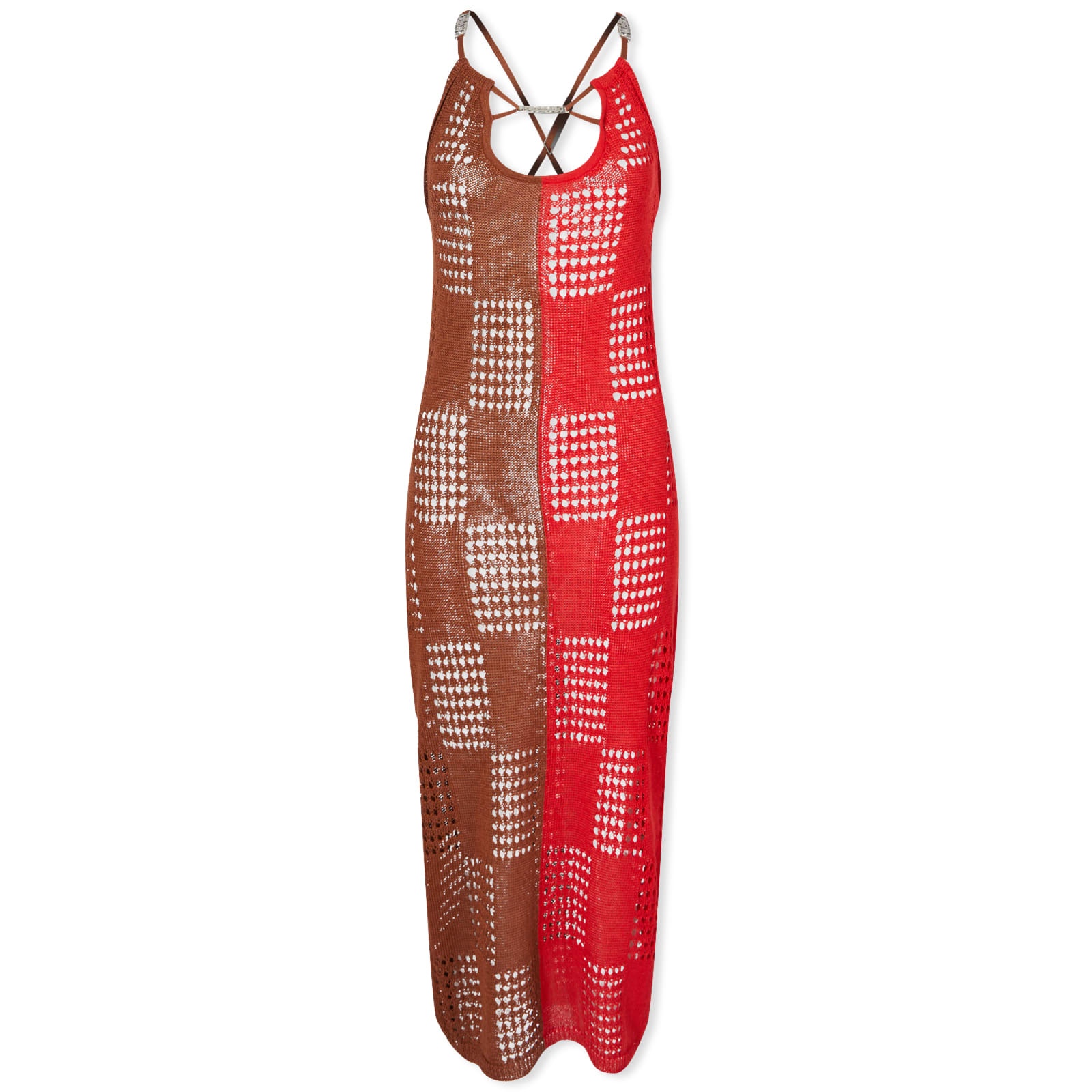 Challenging our fashion preconceptions, Andersson Bell continues to prove that Scandi minimalism and Korean street style go hand-in-hand with this Keira dress. Crafted from delicate crochet knit, this semi-sheer midi-length style is a statement addition to any wardrobe, with its two-tone yarn and crossover back. Ideal for carrying you through from dusk till dawn during those warm summer days. - 50% Linen, 35% Acrylic, 15% Nylon - Midi Length