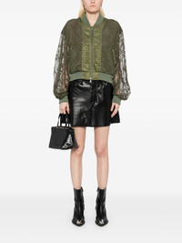 double layered logo lace short bomber jacket Highlights - Olive green - Front zip fastening - Baseball collar - Two side welt pockets - Semi-sheer construction Imported Composition Lining: Polyester 68%, Cotton 32% Outer: Nylon 100% SIZE & FIT Model measurements Height 5 ft 9 in(1.76 m) Bust/Chest 31.1 in(79 cm) Hips 35.03 in(89 cm) Waist 24.4 in(62 cm) FittingInformation Designed to be unstructured, offering a loose fit throughout Made from a midweight non-stretch fabric