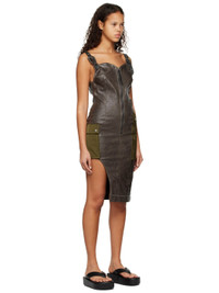 Crinkled faux-leather dress. Polyester-blend canvas trim throughout. · Sweetheart neck · Half-zip closure · Bellows pocket at side seams · Adjustable pin-buckle shoulder straps · Cutout at side seam · Partial faux-suede lining · Logo-engraved silver-tone hardware · Contrast stitching in white and yellow Supplier color: Khaki Body 1: 100% polyester. Body 2: 100% polyester. Body 3: 65% polyester, 35% cotton. Made in South Korea 231375F054000