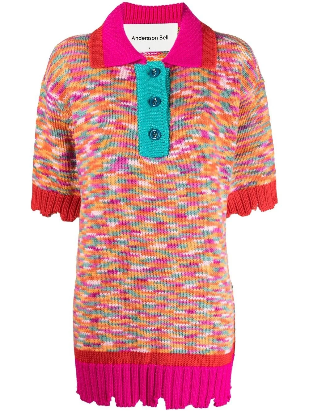 knitted short-sleeved polo shirt multicolour wool blend fine knit distressed effect polo collar front button placket short sleeves Imported Composition Wool 50%, Acrylic 49%, Polyurethane 1% SIZE & FIT Model measurements Height 5 ft 10 in(1.78 m) Bust/Chest 33.07 in(84 cm) Hips 36.61 in(93 cm) Waist 24.8 in(63 cm) FittingInformation This piece fits true to size. We recommend you get your regular size Cut for a loose fit Made with a mid-weight fabric Washing instructions Dry Clean Only