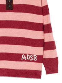 logo-embroidered striped polo top Highlights - Burgundy/blush pink - Front button fastening - Ribbed cuffs and hem - Long sleeves Imported Composition Wool 47%, Nylon 39%, Polyester 14% Washing instructions Dry Clean Only