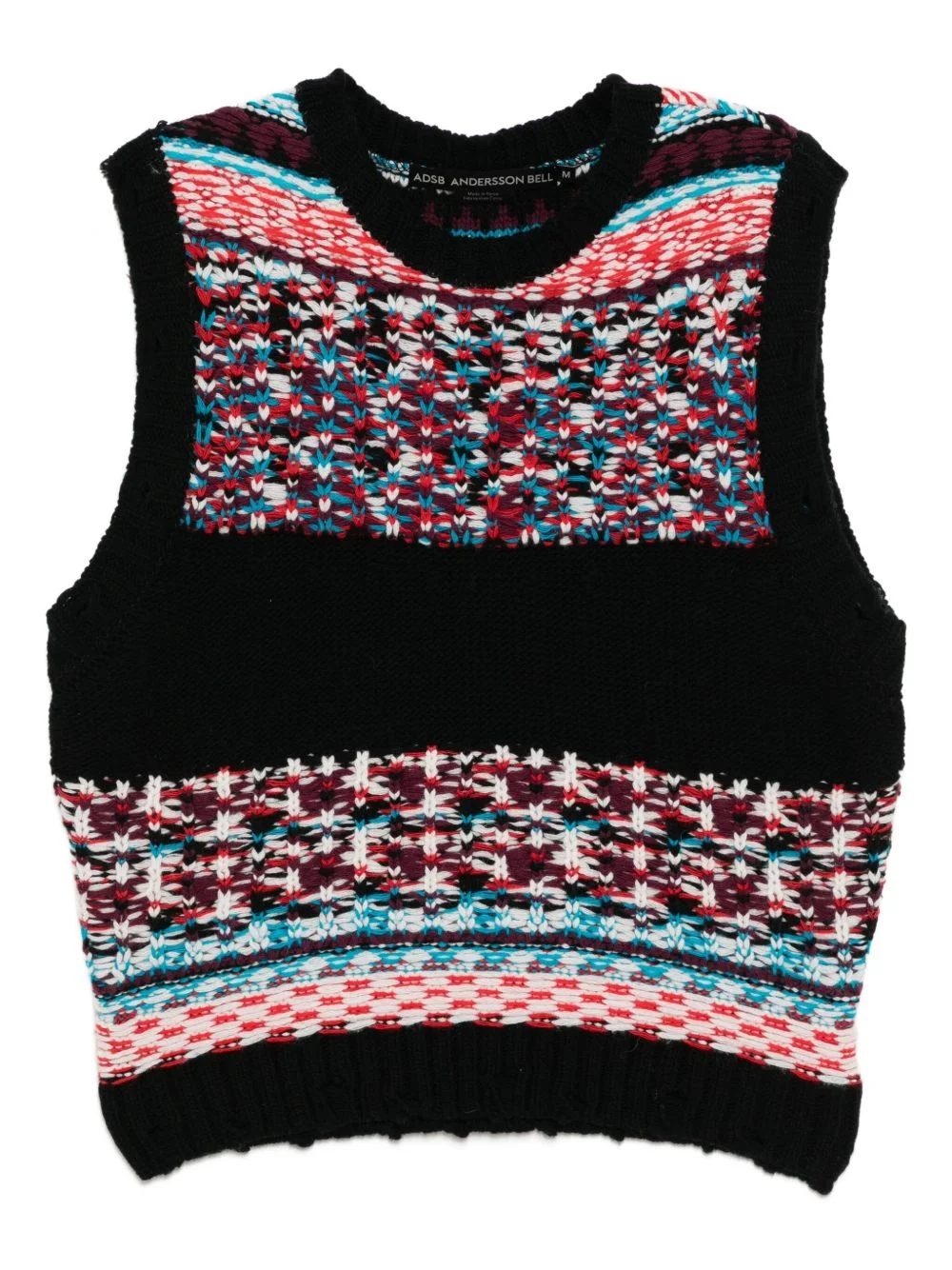 nordic crewneck knitted vest top Highlights - Black - Contrasting collar - Ribbed hem Imported Composition Wool 76%, Nylon 24% Washing instructions Dry Clean Only