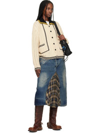 Knit wool-blend cardigan. · Rib-knit spread collar · Button closure · Studs and assorted button hardware at front · Welt pockets at waist · Logo patch at front hem Supplier color: Ecru Body: 50% wool, 31% nylon, 30% acrylic. Trim: 50% cotton, 47% acrylic, 3% polyester. Made in South Korea 261375F095002