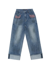 rolled-up jeans Highlights - Blue - Plaid detailing - Distressed effect - Rolled-up hem Imported Composition Cotton 100% Washing instructions Read Manufacturer Guidelines