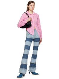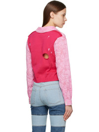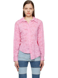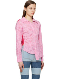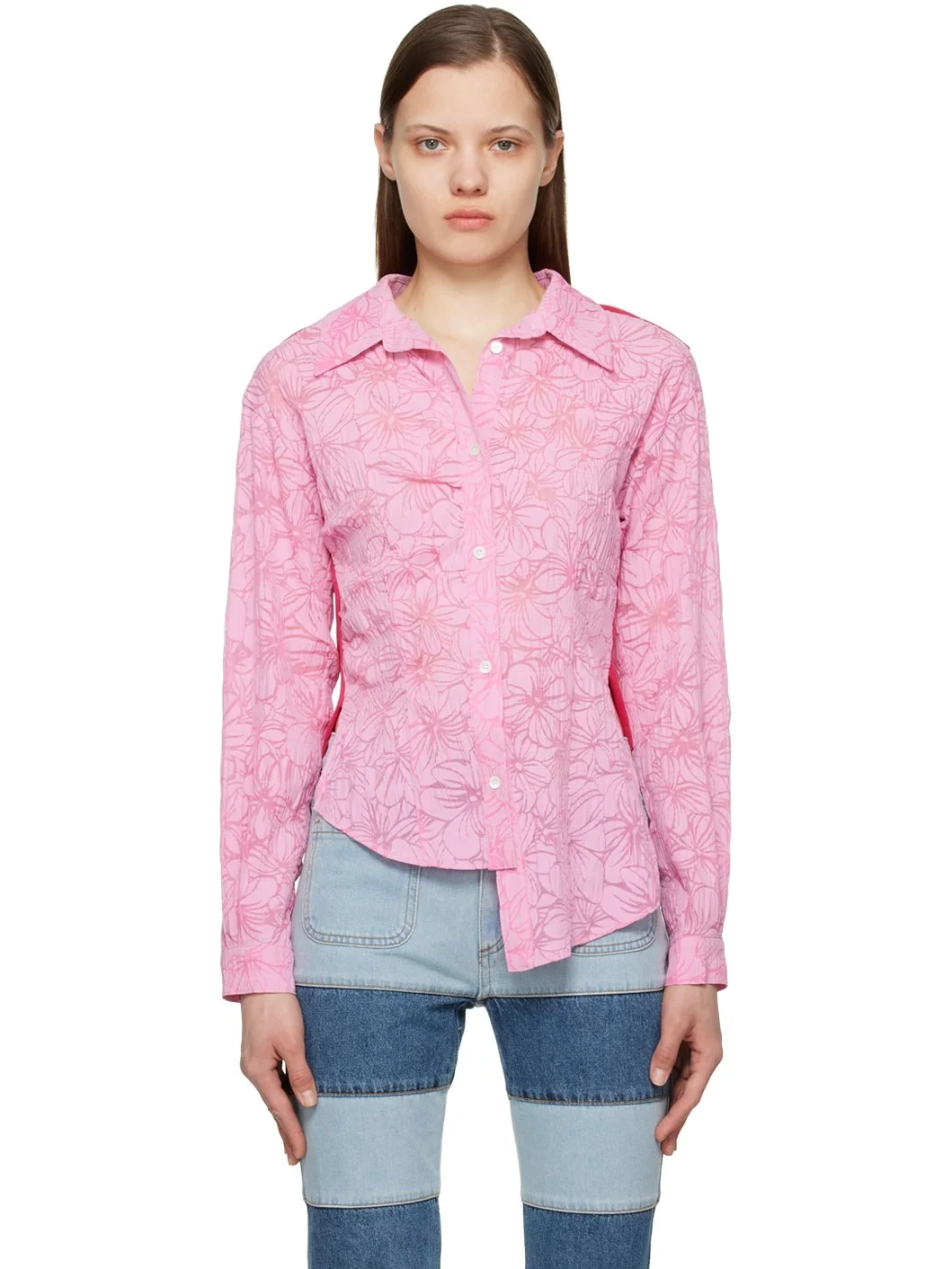 Paneled semi-sheer stretch cotton-blend seersucker and knit cotton shirt. Jacquard floral pattern throughout. · Layered construction · Spread collar · Button closure · Vented side seams · Two-button barrel cuffs · Cutouts and laddering at back · Rib knit trim at at back hem Supplier color: Pink Body 1: 57% cotton, 42% polyester, 1% spandex. Body 2: 100% cotton. Made in South Korea 231375F109000