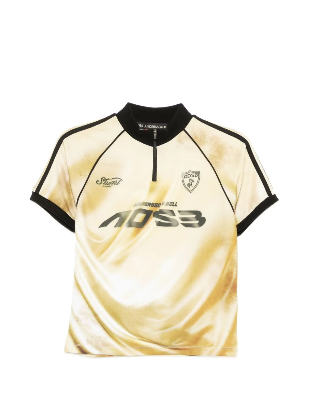 Prined zip-up top Highlights - Gold - Short sleeves - Printed Imported Composition Polyester 90%, Elastane 10% Washing instructions Dry Clean Only